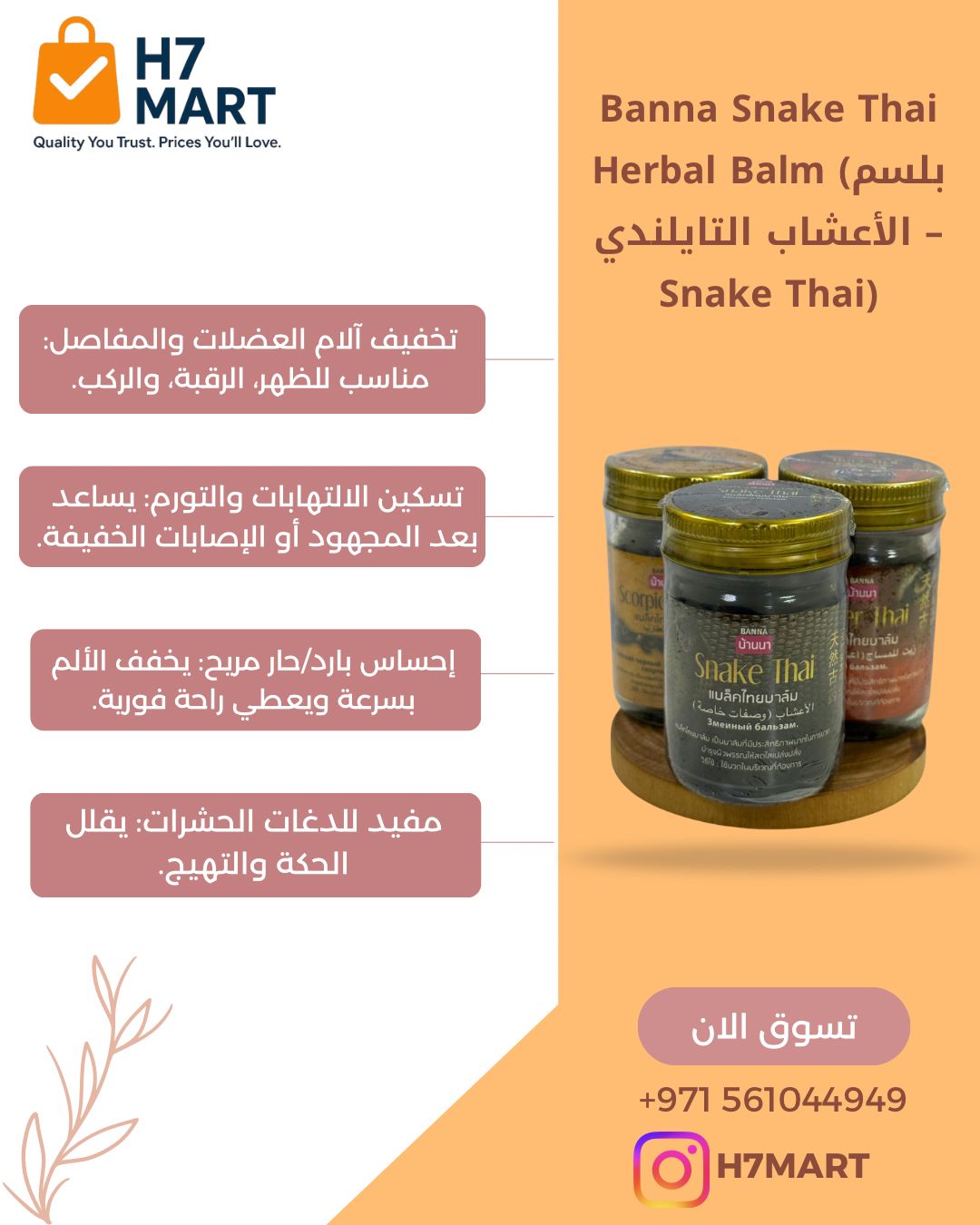 بلسم الأعشاب التايلندي Snake Thai يساعدك على تخفيف آلام العضلات والمفاصل بسرعة، ويمنحك إحساس مريح بارد/حار يدوم 🌿