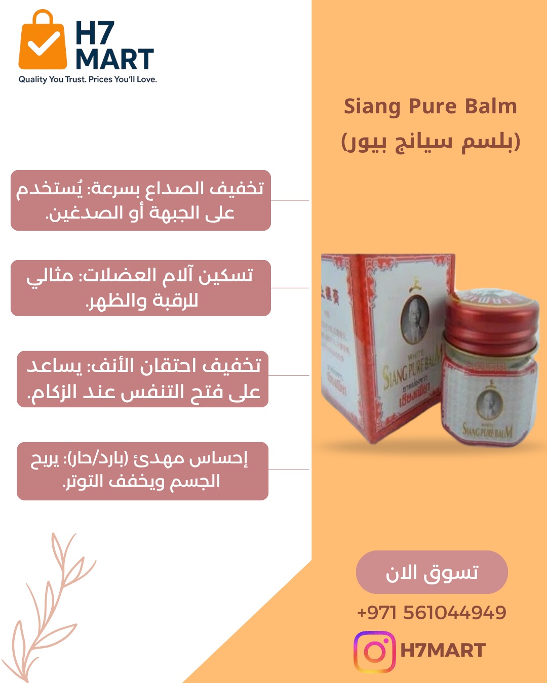 مع بلسم سيانج بيور، استمتع بإحساس منعش يساعدك على تخفيف الصداع وآلام العضلات بسرعة وفعالية.